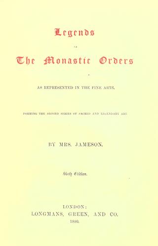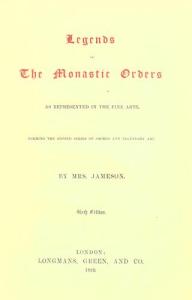 Proprio ieri mi è arrivato un libro fantastico, un’edizione anastatica print-on-demand di Legends of the Monastic Orders as Represented in the Fine Arts, di Anna B. Jameson, apparso per la prima volta a Londra nel 1863, presso Longman, Green, Longman, Roberts & Green. L’ho appena sfogliato. Mrs. Jameson spiega nella prefazione, con un ineccepibile e smagliante stile anglosassone, le ragioni dell’opera: «Un tentativo di realizzare una cosa che non era mai stata fatta: interpretare, per quanto in una dimensione limitata e con una conoscenza assai manchevole, quelle opere d’arte che le chiese e le gallerie del Continente, e le nostre ricche collezioni, ci hanno rese familiari come oggetti di apprezzamento estetico, pur rimanendo dimenticate come temi di riflessione; mostrare come, mentre ci siamo saziati di considerare i dipinti sacri come semplici decorazioni, valutati più per i nomi a essi collegati che per il loro intrinseco valore, non li abbiamo sufficientemente esaminati come se fossero libri – poesie – con una vitalità e necessità loro proprie, nel bene e nel male, rinunciando pertanto a una rigogliosa fonte di delizia e accrescimento, quale si può trovare nella maggior parte di essi, anche in quelli meno notevoli in senso strettamente artistico».