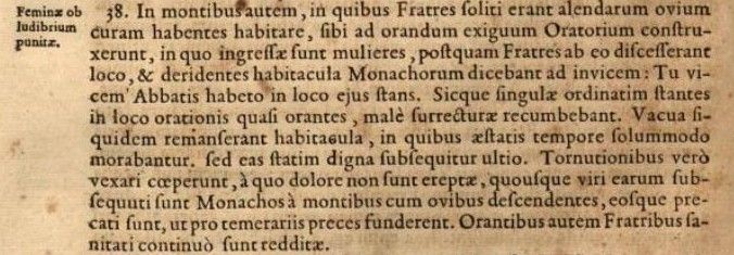 Inaudito! E infatti «un’adeguata vendetta divina le raggiunse subito»: visto che avevano deriso i monaci con finte genuflessioni e inchini, «incominciarono a essere tormentate dal mal di schiena» (l’originale parla di tornutionibus, termine con pochissime attestazioni, cui viene attribuito anche il significato di «vertigini»).